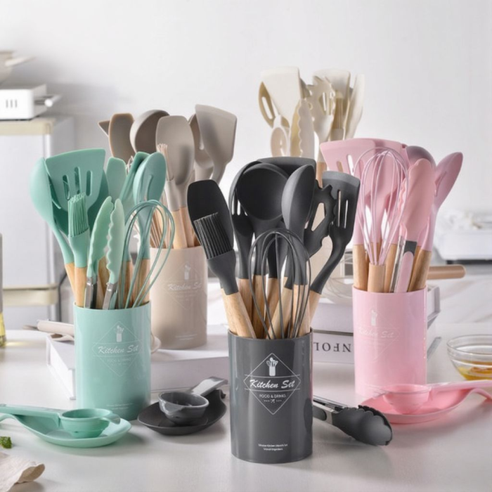 Upgrade your kitchen toolkit with this 14-Piece Spoon & Spatula Set — a complete collection of everyday utensils in a stylish finish. Whether you’re stirring, flipping, sautéing, or serving, this set gives you the tools you need. Available in three modern colors — Khaki, Dark Grey, and White — so you can match your kitchen decor or choose your style. Durable and practical, these utensils are designed for regular use and will make cooking and serving easier for you.