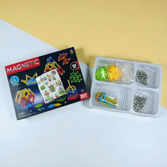 Made from durable ABS plastic, each piece contains powerful embedded magnets that snap together securely, making it easy to build stable 3D structures like towers, houses, or imaginative pipeline creations