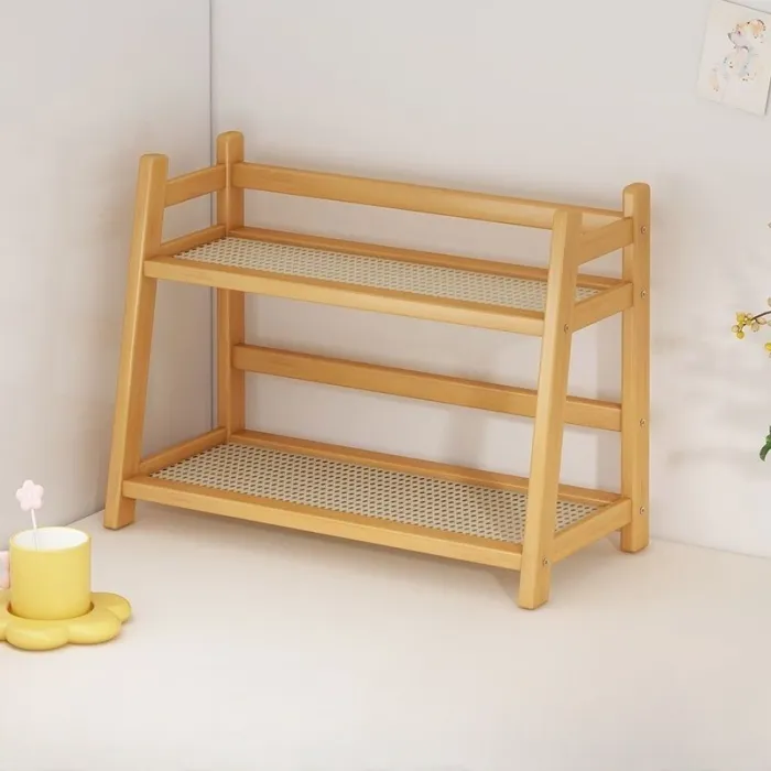 Add a touch of vintage charm to your space with this Antique Rattan-Style Double-Layer Desktop Storage Rack. Designed with a beautiful cream finish and a classic woven texture, this rack is perfect for those who love a "Cozy Home" or "Cottagecore" aesthetic.