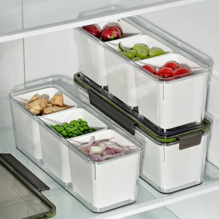 Keep your kitchen essentials organized and fresh for longer with this multi-grid refrigerator storage box. Specifically designed for "The Trinity" of cooking—ginger, garlic, and onions—this box features three separate compartments to prevent cross-contamination and odor mixing.