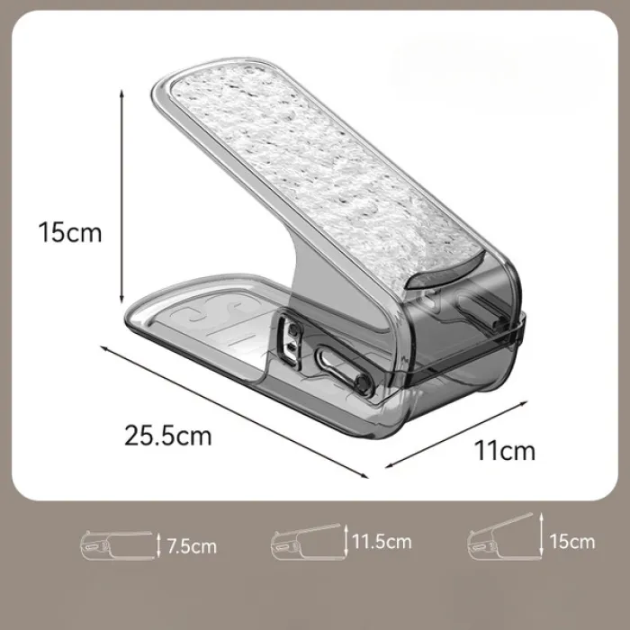 The adjustable height design allows you to store different types of shoes—from flats and sandals to sneakers—without crushing or deforming them Its anti-slip surface ensures shoes stay in place, while the compact double-layer structure maximizes vertical storage