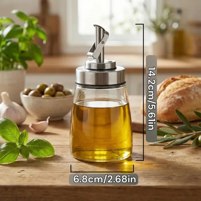 Upgrade your kitchen with the 180mL Automatic Glass Cone Oil Bottle Crafted from durable glass, this leak-proof bottle features an automatic opening and closing lid, making it perfect for oils, soy sauce, vinegar, and other seasonings Its modern minimalist design ensures a stylish yet practical addition to your kitchen counter Easy to clean, long-lasting, and ideal for everyday cooking