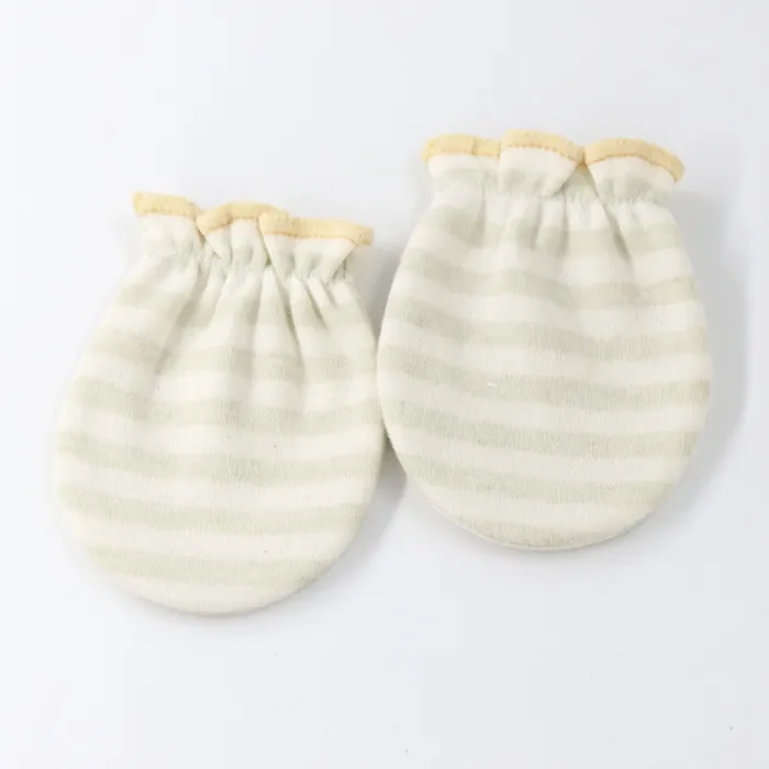 These Medium Green Stripes Baby Mittens offer soft protection for newborns and infants. Made from a breathable cotton blend, they prevent scratching and hand-to-mouth contact while keeping hands warm. Elastic cuffs ensure a secure fit without discomfort.