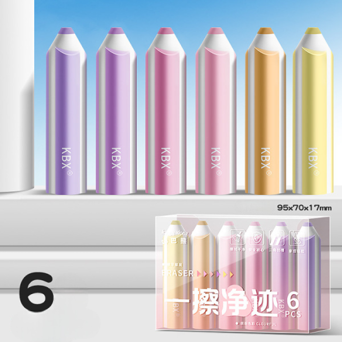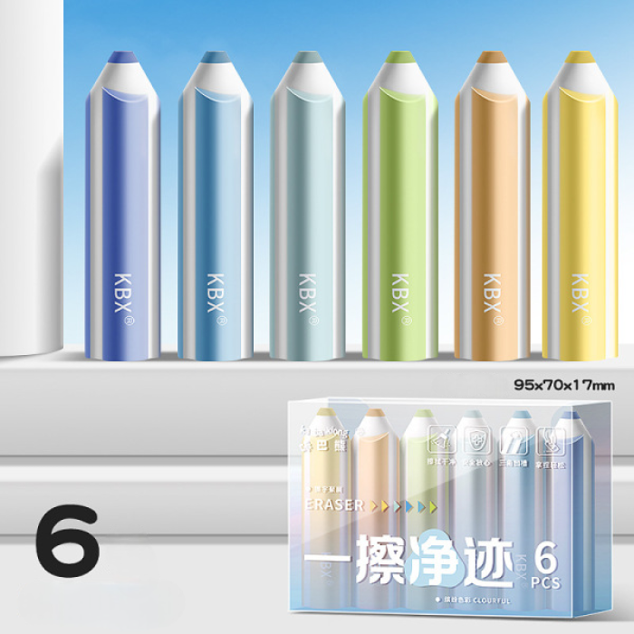 Neat, low-dust erasing in a handy boxed pack — the Boxed 6-Piece Eraser Set comes in two colour options (Pink and Blue). Each soft vinyl eraser removes pencil marks cleanly without smudging and produces minimal crumbs, making them ideal for students, artists, and office use. The boxed packaging keeps erasers fresh and makes them easy to stock or gift.