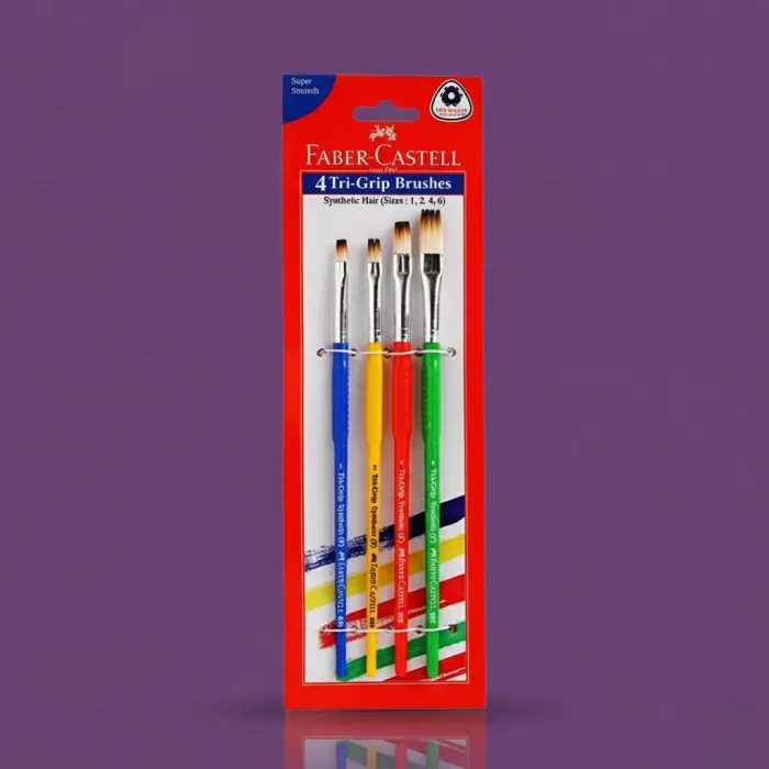 Elevate your painting tools with the Faber-Castell Tri-Grip Flat Brush Set – Pack of 4. These flat-shaped brushes are designed for precision and coverage, featuring the Tri-Grip triangular handle which prevents the brushes from rolling and enhances grip for more control. The synthetic bristles and seamless ferrule construction ensure durability and smooth performance across water-based paints like watercolour, acrylic and gouache. Ideal for students and creative hobbyists, this set brings professional features to a compact, accessible pack.