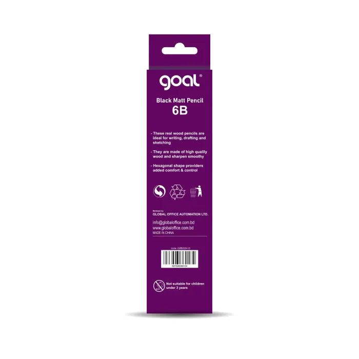 The Goal Black Matt Pencil 6B delivers high-quality, soft graphite performance in a stylish matte-black wooden body. With its 6B grade lead, this pencil is perfect for producing rich dark lines, expressive sketches, detailed shading and creative artwork. The real‑wood barrel ensures smooth sharpening and longevity, while the hexagonal shape keeps it comfortable to hold and prevents rolling off surfaces. Whether you’re a student working on assignments, an art enthusiast experimenting with textures, or a professional designer refining sketches, this pencil offers reliable and refined performance.