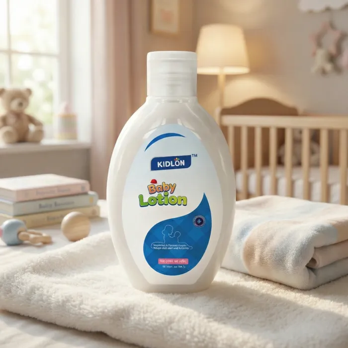 KIDLON Baby Lotion delivers gentle, long-lasting hydration for your baby’s delicate skin Its lightweight formula absorbs quickly without greasiness, leaving skin soft, smooth, and comfortable Enriched with natural moisturizers — including shea butter, chamomile extract, and aloe vera — it helps lock in moisture and protect skin from dryness Free from harsh chemicals like parabens and phthalates, this hypoallergenic lotion is ideal for daily use on newborns and toddlers, keeping their skin healthy and well-nourished