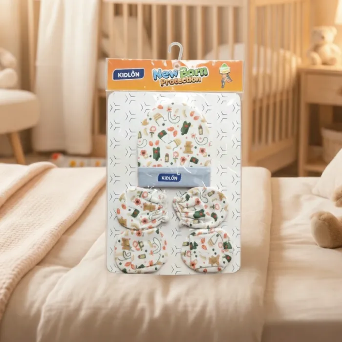 The Kidlon Blister 5-Pcs Newborn Set offers everything a newborn needs for cozy comfort and protection This adorable set includes a soft baby cap, two pairs of mittens, and two pairs of booties — all crafted from gentle, breathable cotton that’s kind to delicate baby skin The stretchable, hypoallergenic fabric keeps your baby warm and snug while allowing airflow, perfect for everyday use or for sleep time Designed for newborns (0–3 months), this set is a practical and thoughtful choice for new parents or as a baby-shower gift With playful prints and trusted Kidlon quality, it’s a must-have starter set for every little one’s first months