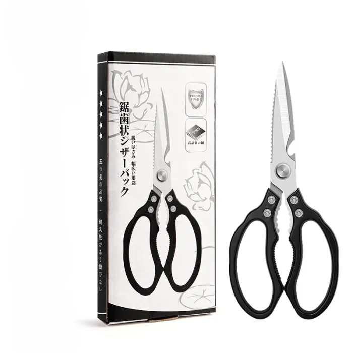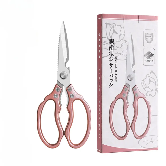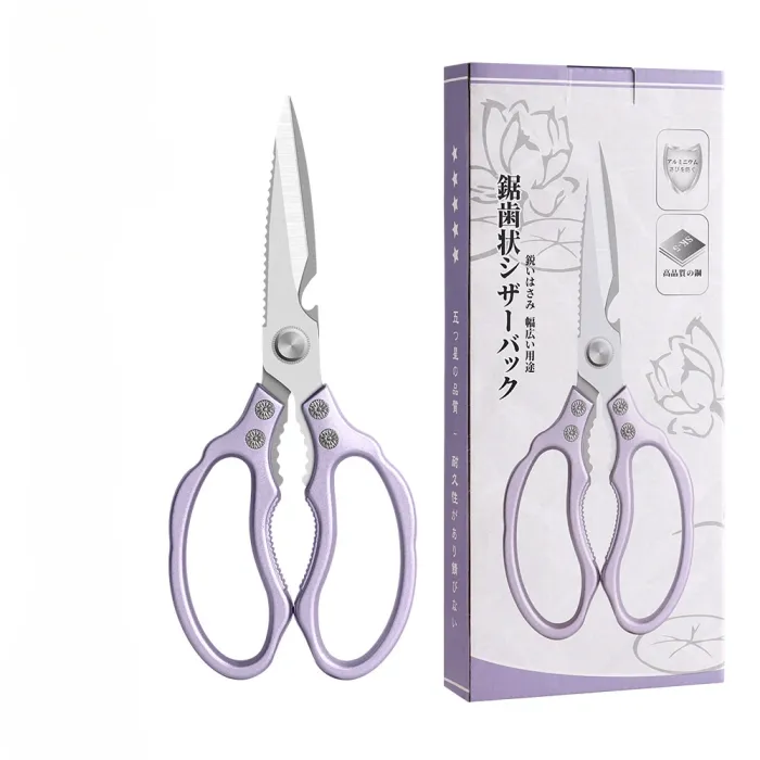 The K79 Lotus Shear is a heavy-duty, multi-purpose scissor designed for efficient cutting in both kitchen and household use. Featuring sawtooth and serrated stainless steel blades, it provides strong grip and cutting power for tough materials such as meat, poultry bones, vegetables, and packaging.
