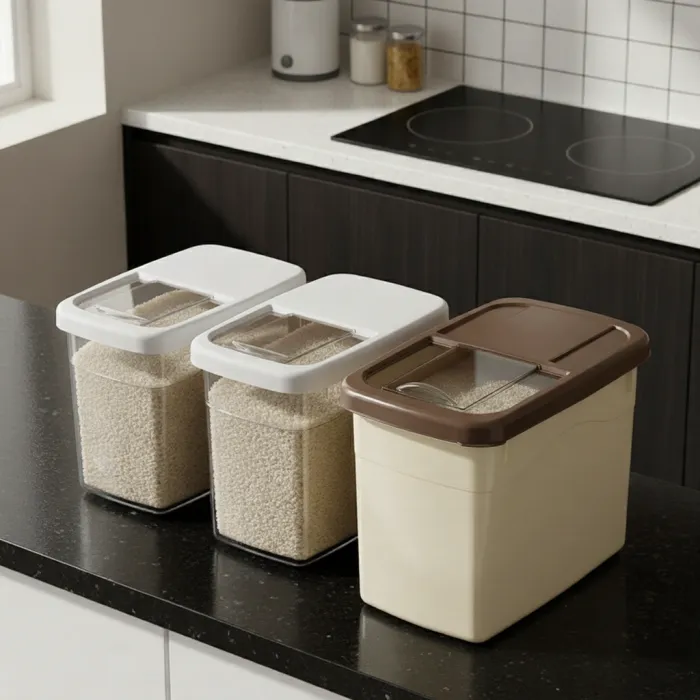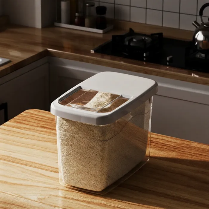 Made from durable, food-grade PP plastic, it keeps rice, flour and grains fresh by blocking moisture and insects