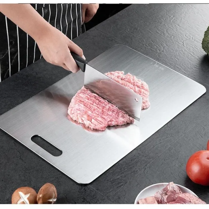 Say goodbye to moldy wooden boards and hello to the ultimate in kitchen hygiene. Our Premium 304 Stainless Steel Double-Sided Cutting Board is a "German-standard" household essential designed for the modern Bangladeshi kitchen. Made from thickened, edible-grade SUS304 stainless steel, this board is naturally mildew-resistant and prevents the growth of bacteria, ensuring your family's meals remain safe and healthy.