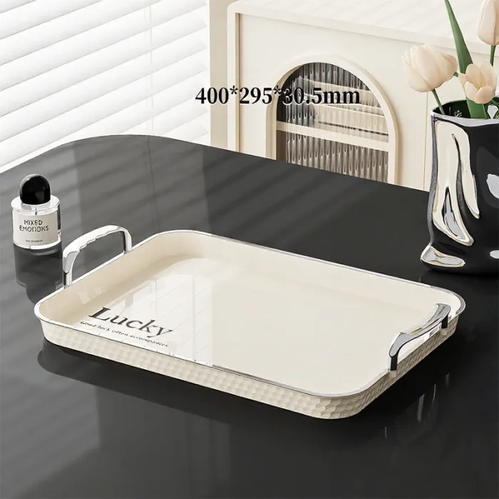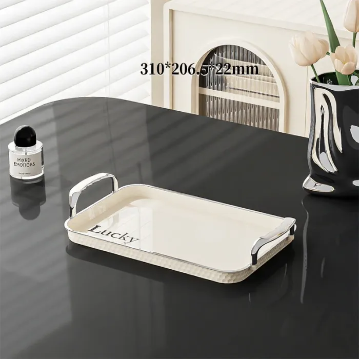 Elevate your hosting game with our Milky White Binaural Serving Tray. This rectangular household essential is designed with built-in "binaural" handles, making it incredibly easy and safe to carry water cups, tea sets, or heavy plates of food.