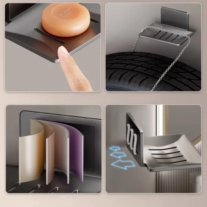 Keep your washstand clean and organized with our Premium Punch-Free Wall-Mounted Soap Holder. This modern household essential is designed to save space while providing a hygienic storage solution for your soap. The high-quality construction ensures it is rust-proof and durable even in humid bathroom conditions.