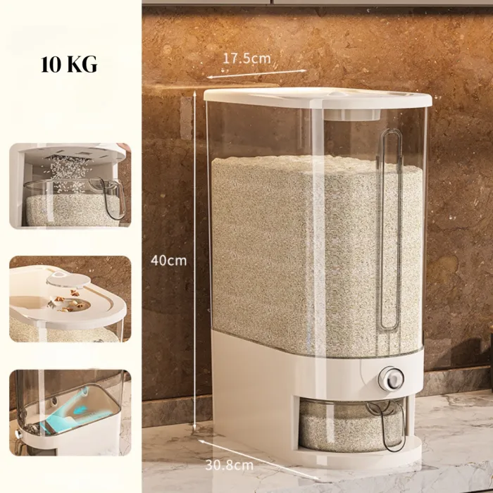 The clear design lets you easily see contents and quantity at a glance. Its sturdy construction and airtight seal make it ideal for daily kitchen use and long-term storage. Choose from two convenient size variants—5kg and 10kg—to suit your household needs.